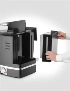 Obudowa wykonana z tworzywa ABS.Możliwość zaprogramowania ponad 20 różnych napojów.Zbiornik na wodę o pojemności 6 l lub podłączenie bezpośrednio do sieci wodociągowej.Stożkowy młynek, 9 poziomów miel...