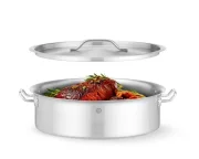 Niski garek z pokrywką HENDI charakteryzuje się solidną konstrukcją ze stali nierdzewnej, aluminium oraz stali nierdzewnej 18/0, co zapewnia efektywne rozprowadzanie ciepła, idealne do profesjonalnego gotowania. Pokrywka ma zintegrowane otwory umożliwiające swobodne odprowadzanie pary, a odporne na wysoką temperaturę uchwyty zwiększają bezpieczeństwo podczas użytkowania garnka. Wykończony eleganckim, satynowym połyskiem, garnek nadaje się do wszystkich źródeł ciepła; nadaje się do mycia w zmywarce.
