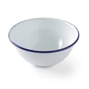 Stal pokryta białą emalią z delikatnym niebieskim brzegiem Wysokiej jakości emalia Odporna na ścieranie Możliwość piętrowania Można myć w zmywarkach Nie można używać w kuchenkach mikrofalowychOdpornoś...