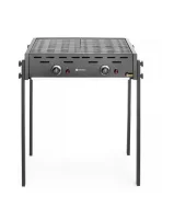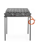 Dostępny w 2 wersjach: wolnostojąca lub nablatowa. 2 niezależne palniki gazowe z zapalnikiem piezoelektrycznym. 2 osłony palników wykonane ze stali nierdzewnej AISI 430. 2 ruszty ze stali chromowanej, o wymiarach 470x320 mm. Duża tacka ociekowa, pomaga również w utrzymaniu ciepła. Miedziane zawory z systemem automatycznego odłączania przepływu gazu – system uruchamia się po zgaszeniu płomienia. W zestawie wąż gazowy z reduktorem. Odpowiedni do użytku na gaz propan i butan