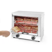 2 poziomy, 6 klamer na tosty - wykonane ze stali nierdzewnejLampy kwarcowe do szybkiego podgrzewania, temperatura osiągana w maksimum 30 sekundSchładzanie lamp w ciągu kilku sekundPrzełącznik do wybor...